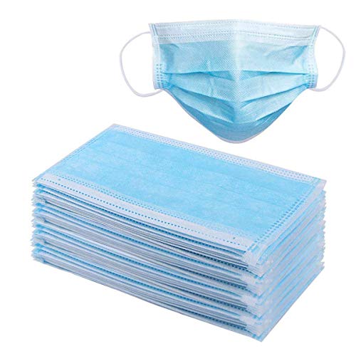 En PP non tissé 3 plis, sans latex, CE, Utilisation unique, avec boucles d’attaches élastiques aux oreilles, protection de la bouche et du nez, couleur bleue, paquet de 50 pièces.
